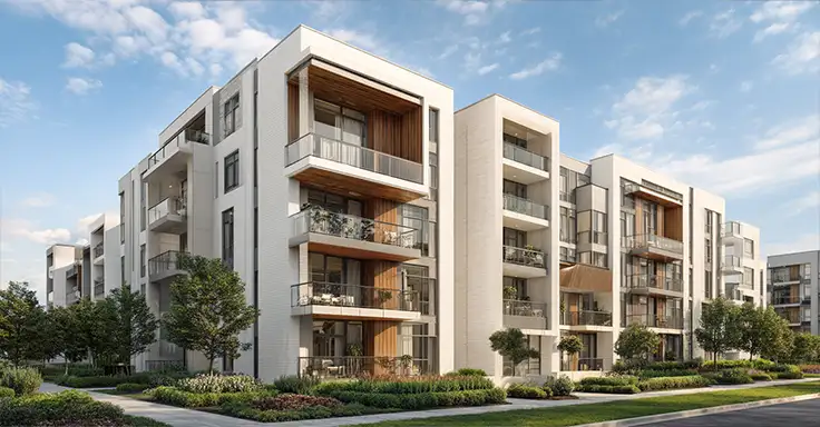 Modernes Mehrfamilienhaus mit Balkonen und Garten